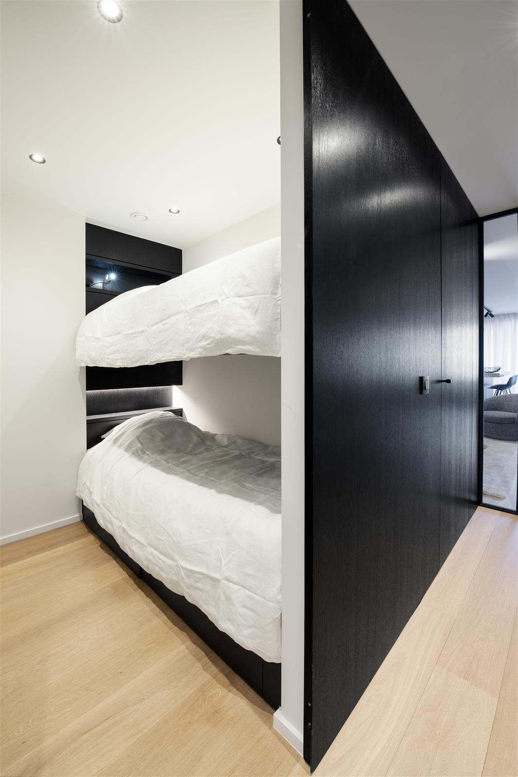 Superbe appartement offrant tout le luxe et le confort souhaités, situé en plein centre. Garage inclus. L’appartement comprend deux véritables chambres doubles, dont une suite avec douche à l’italienne, ainsi qu’une troisième chambre avec lits superposés. Un deuxième salle de bains avec douche à l’italienne se trouve dans le couloir.