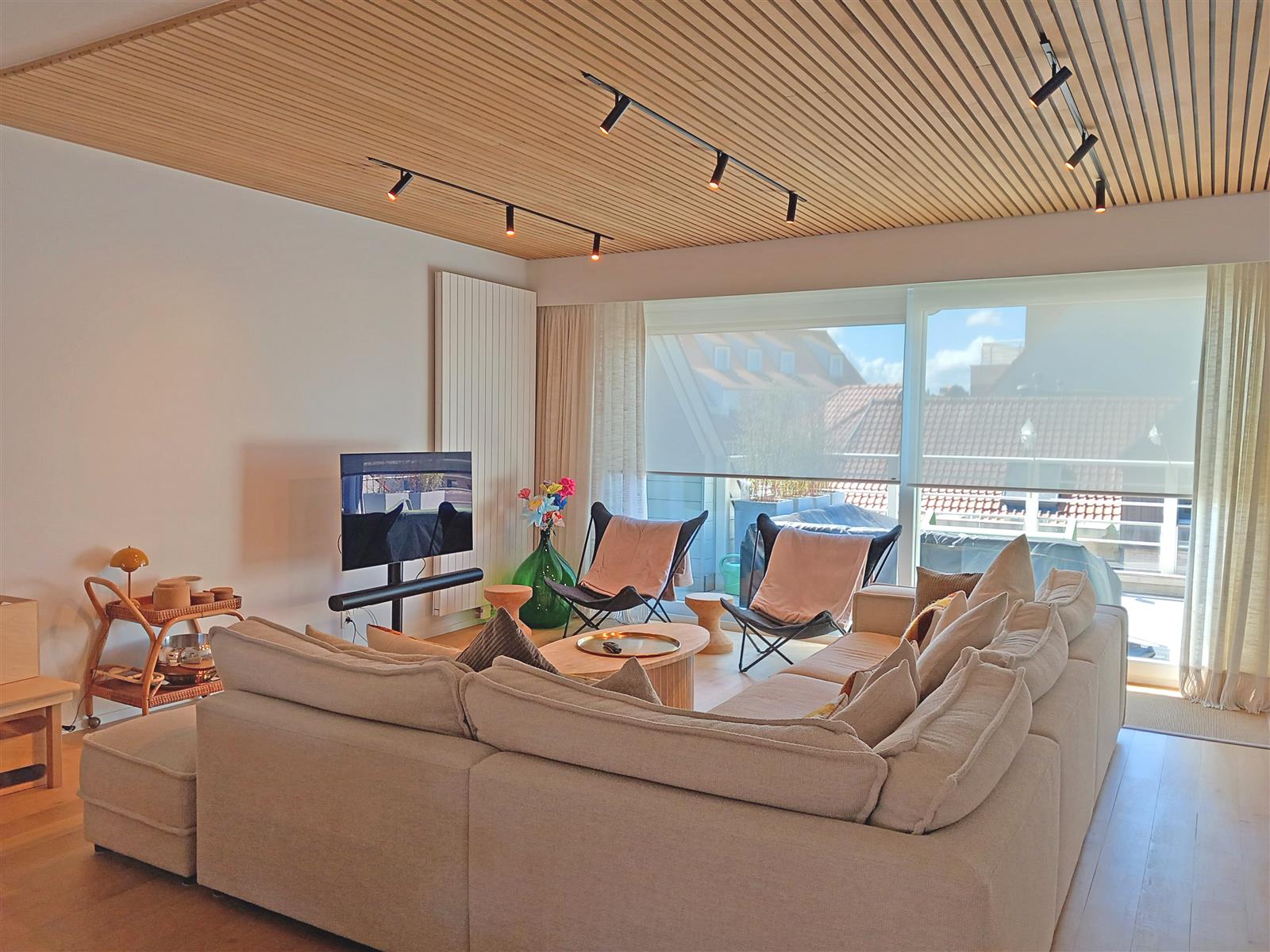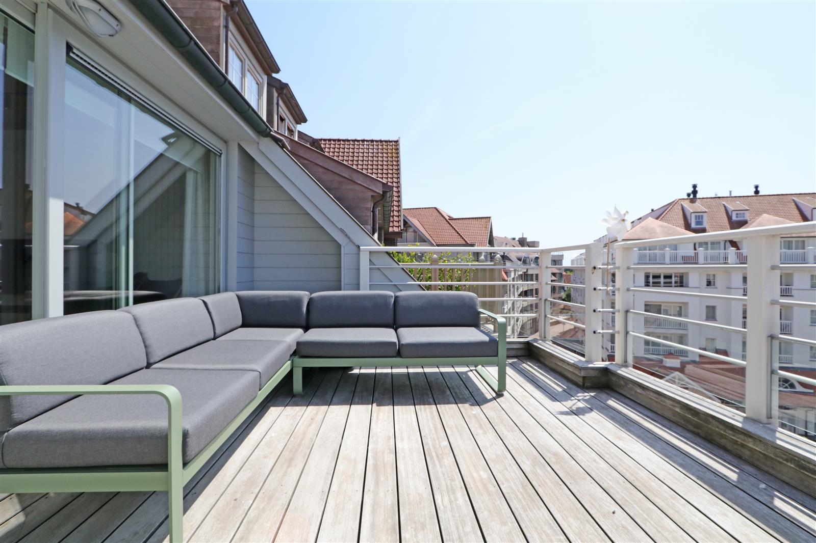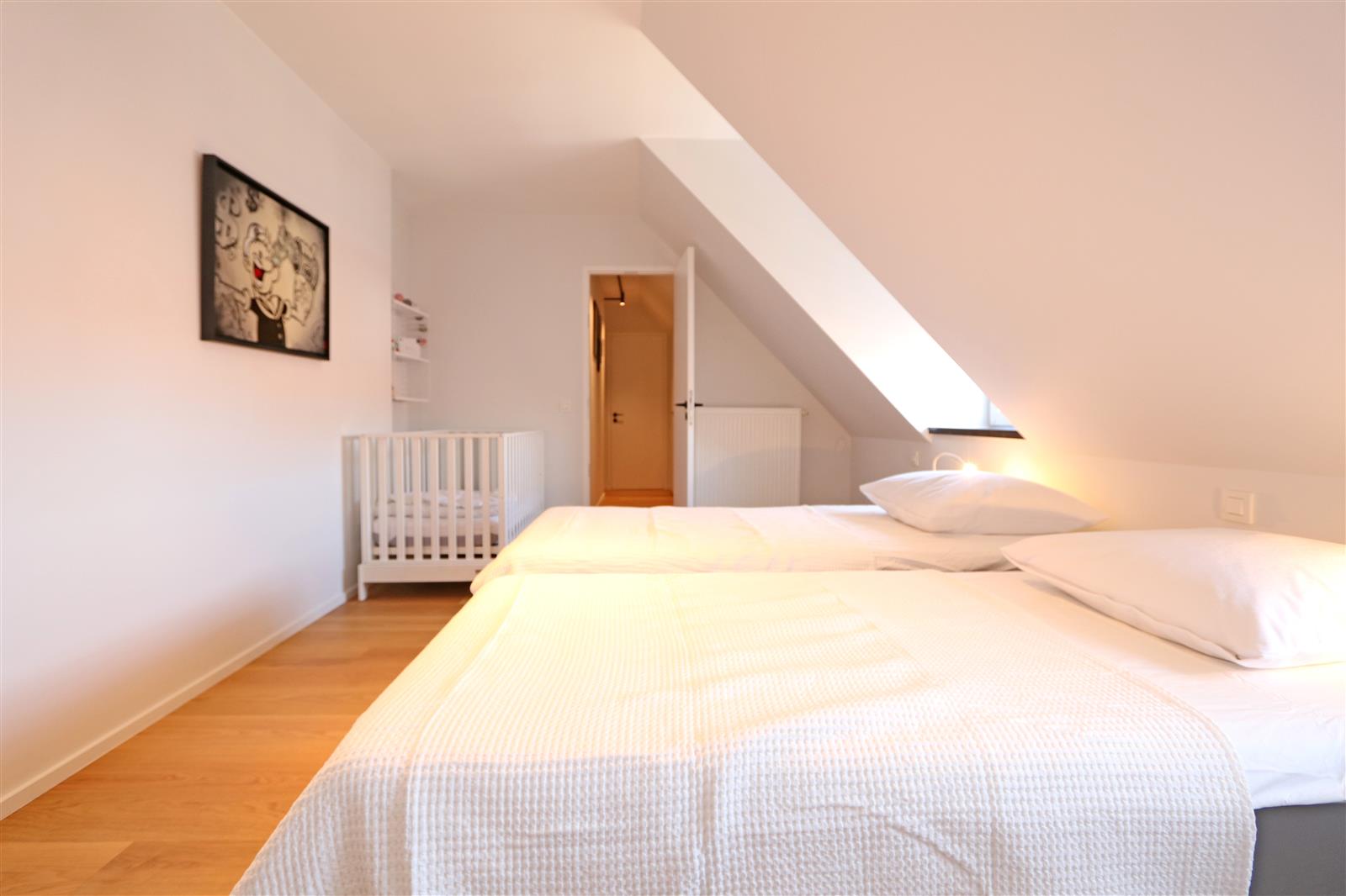 Charmant duplex penthouse, aménagé avec goût et doté d’une cuisine ouverte. Il dispose de vastes terrasses ensoleillées à l’avant et à l’arrière. Au rez-de-chaussée se trouve une première chambre double avec salle de bain privative. À l’étage supérieur, deux autres chambres : une grande chambre double avec salle de bain complète et une chambre d’enfant avec salle de douche attenante. Un garage dans la résidence est inclus.