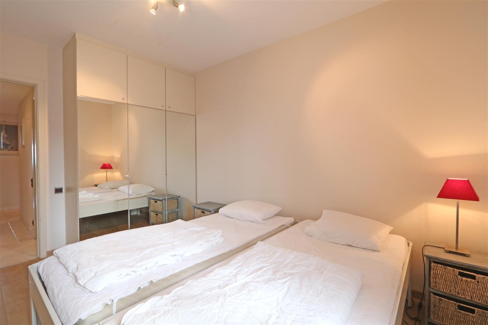 Appartement avec deux chambres à coucher et une vue mer magnifique, situé au coeur du Zoute. Emplacement dans l'immeuble.