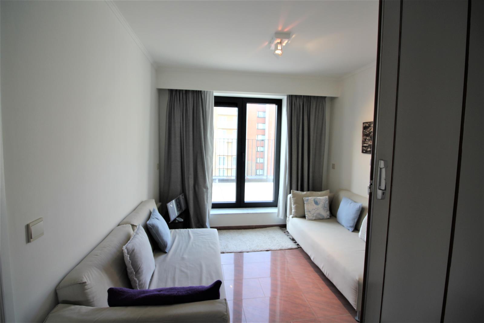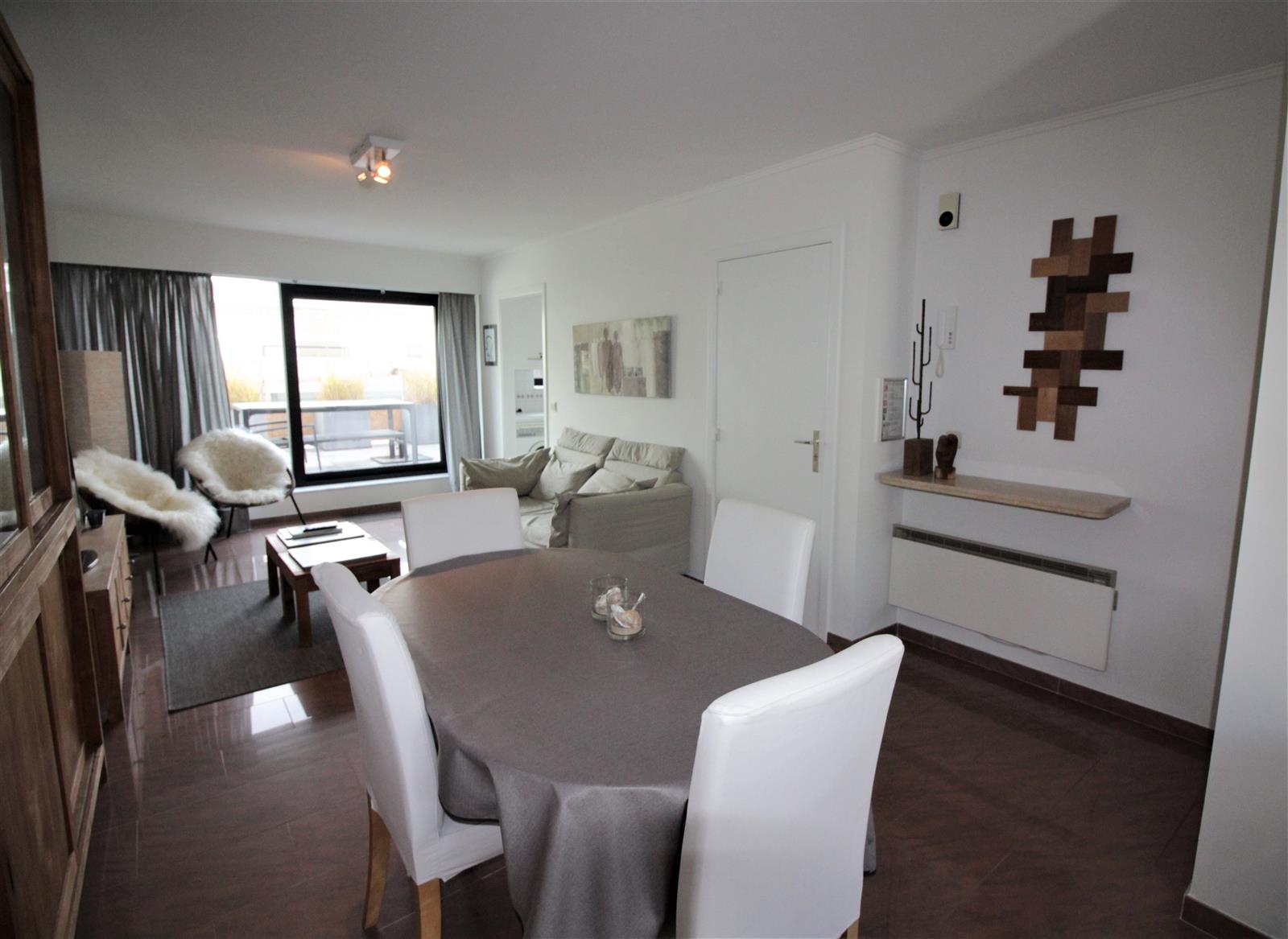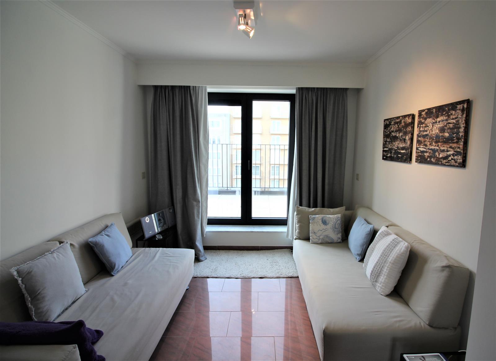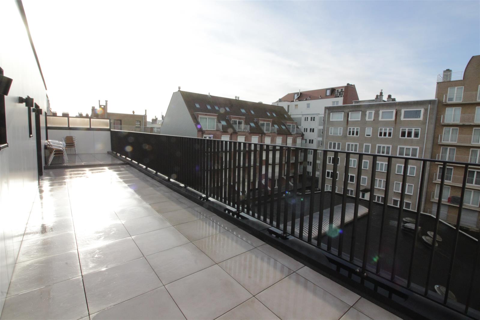 Gezellige penthouse met ruime terrassen voor- en achteraan. 1 slaapkamer en aparte slaaphoek die kan afgesloten worden. Rechtstreekse toegang tot het appartement met de lift en staanplaats in het gebouw.